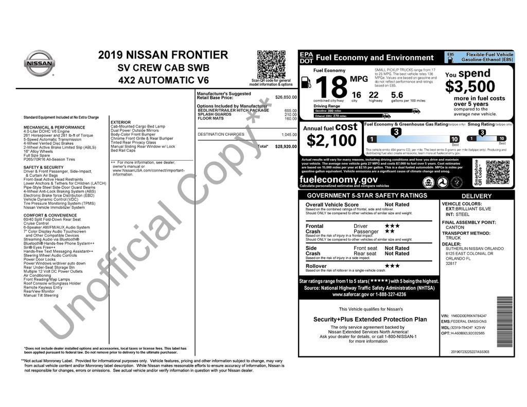 - Vehicle Name: Nissan Frontier