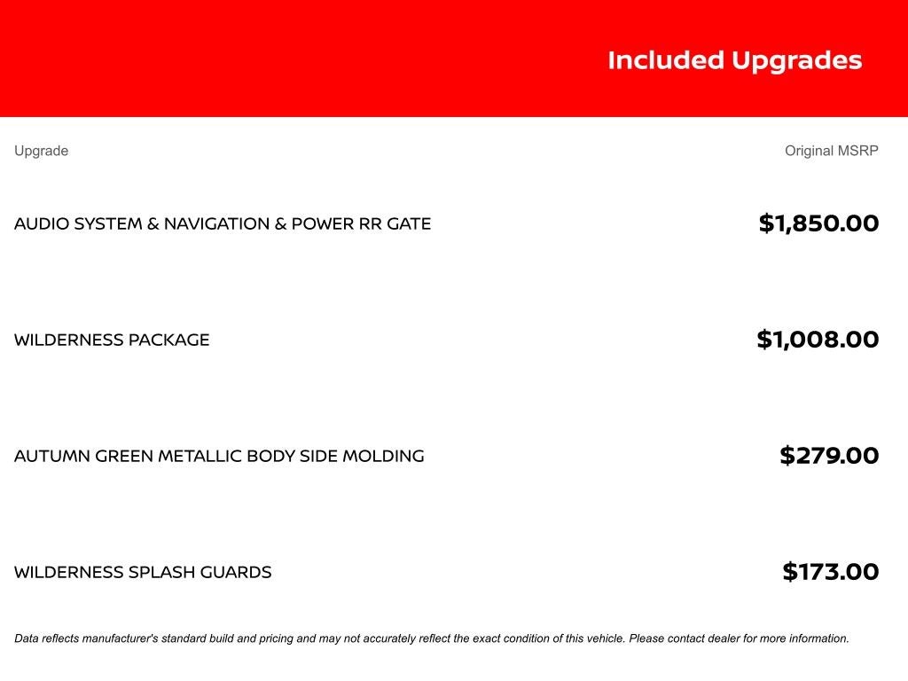 - 4-Wheel Disc Brakes w/4-Wheel ABS, Front And Rear Vented Discs, Brake Assist, Hill Descent Control, Hill Hold Control and Electric Parking Brake