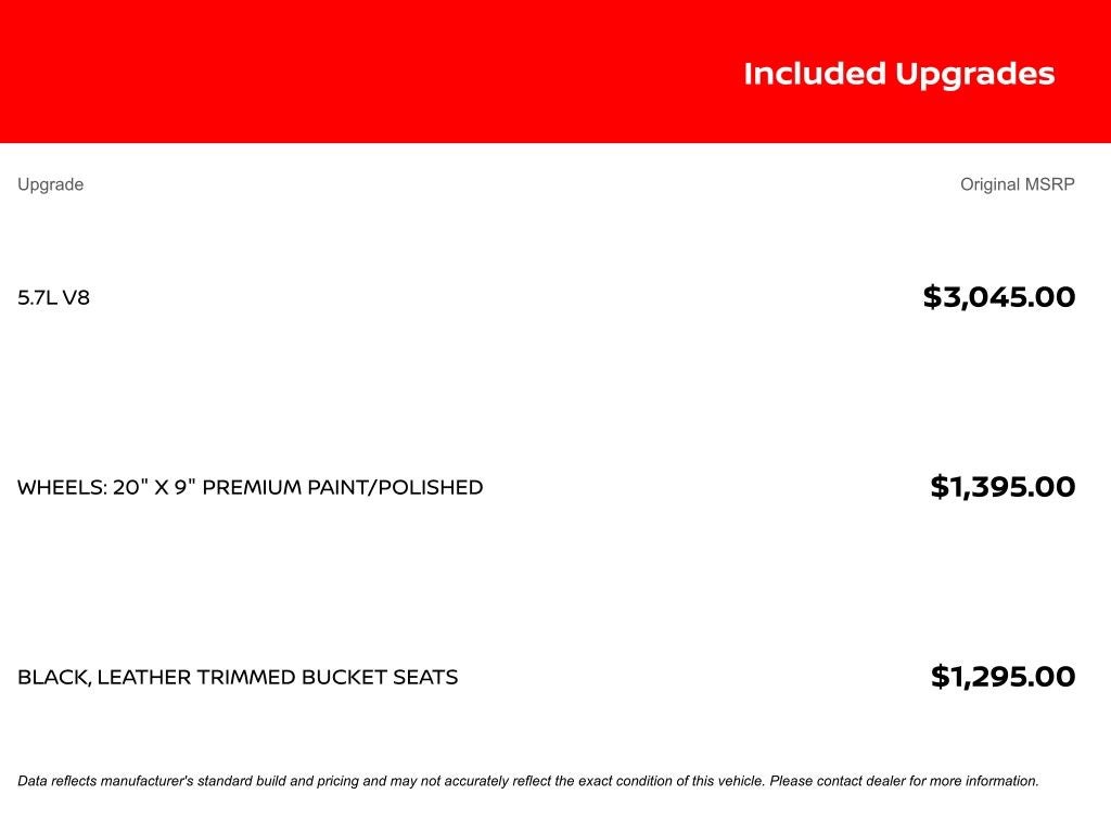 - Wheels: 20" x 9" Premium Paint/Polished